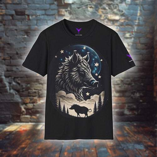 Lunar Swine Trekker – Unisex T-Shirt, S-3XL, Wildschwein im Mondlicht