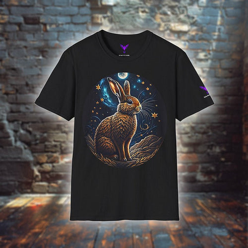 Starry Fur – Unisex T-Shirt, S-3XL, Hasenmotiv im nächtlichen Stil