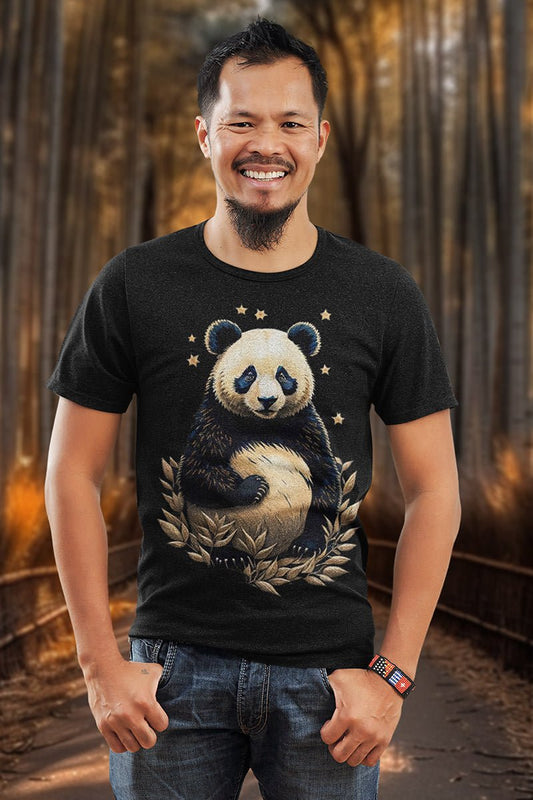 Panda Bear – Unisex T-Shirt, S-3XL, Süßem Panda-Motiv und goldenen Sternen