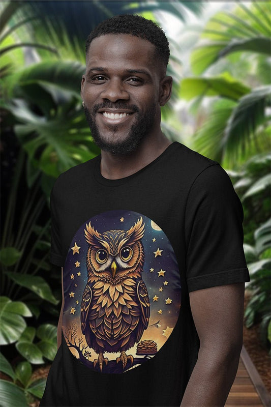 Wisdom's Gaze – Unisex T-Shirt, S-3XL, Eindrucksvollem Eulen-Kunstwerk