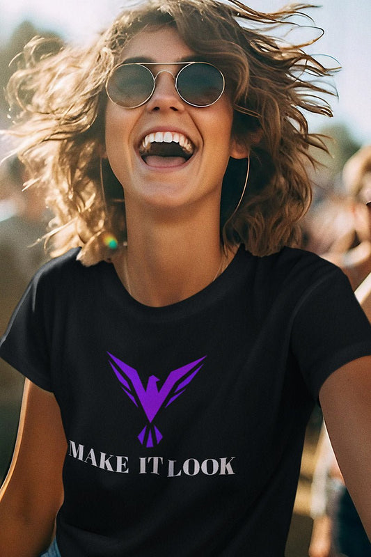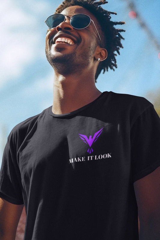 Make it Look ORIGINAL `T-Shirt` – Schwarz mit Violettem Druck, Modern, S-3XL