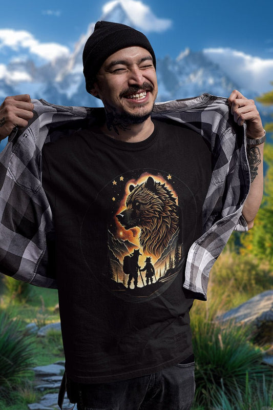 Bear's Gaze – Unisex T-Shirt mit leuchtendem Bären und nächtlichem Wald, S-3XL