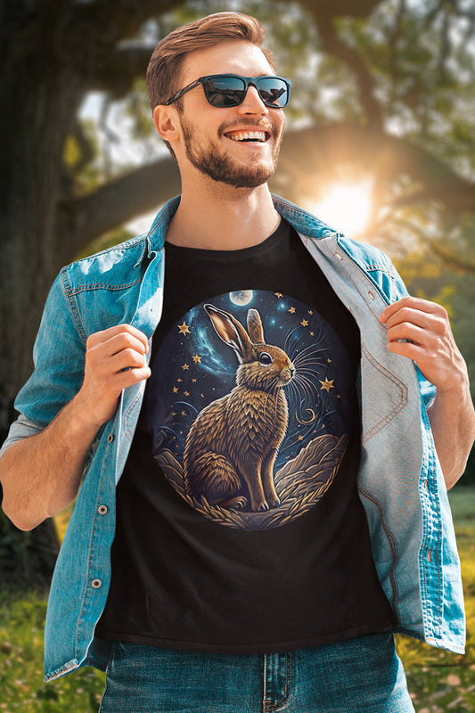 Starry Fur – Unisex T-Shirt, S-3XL, Hasenmotiv im nächtlichen Stil