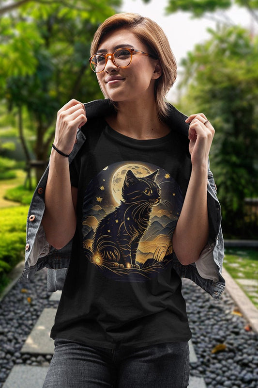 Starlit Silhouette – Unisex T-Shirt, S-3XL, Katzen-Mystik im Mondlichtschein